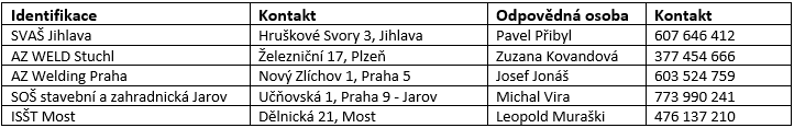 SŠ svářečské školy provádějící přípravu základních kurzů svařování kovů